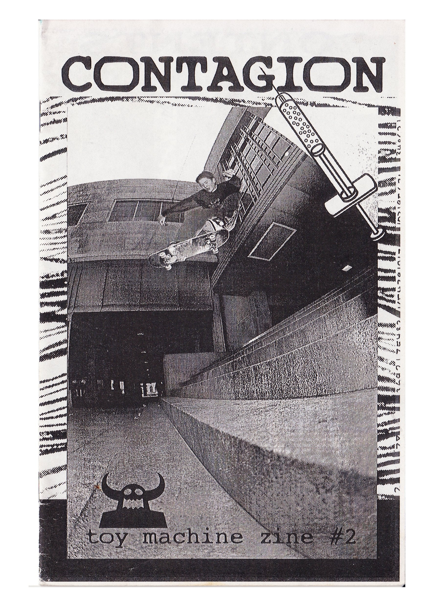 Toy Machine obsession! The second issue in a series attempting to document the Toy Machine brand and artwork from 1993-1999 one year at a time. This issue features every Toy Machine advertisement from 1995 along with a 4 page interview with Jerry Fowler. Also includes a 16 page interview with Satva Leung on his life and time skating for Toy Machine, a 6 page comic by Dylan Drug Dogs, write up by Anthony Poppalardo, and a reprint of the Toy Machine fanzine #2 made by Ed Templeton in 1995.
